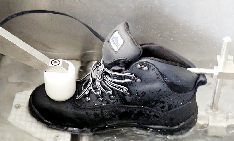 通過前面對防水勞保鞋的簡單介紹我們知道防水性能可通過兩種方法實現(xiàn),一是防潑水,二是內襯實現(xiàn)防水性能。因此我們有成品鞋防水測試和防水襪套測試,兩種不同方式檢驗防水測試。